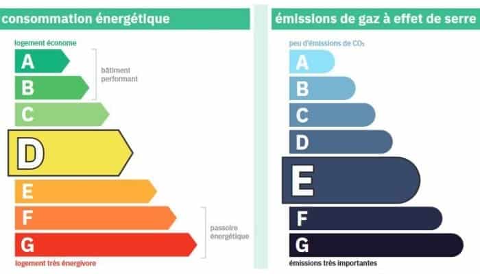 Son résultat est synthétisé par deux étiquettes : l’une indiquant son niveau de consommation d’énergie l’autre ses émissions de gaz à effet de serre.